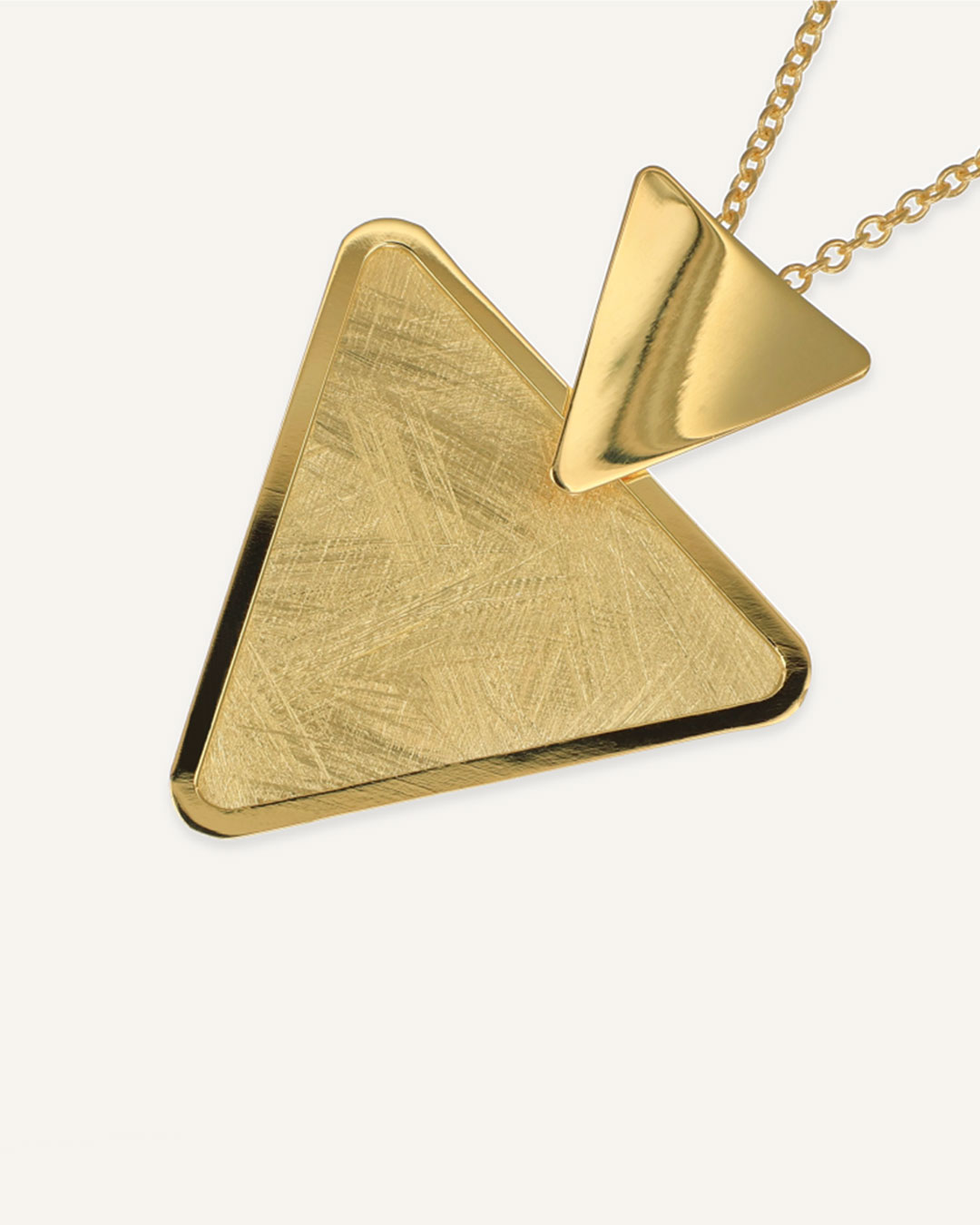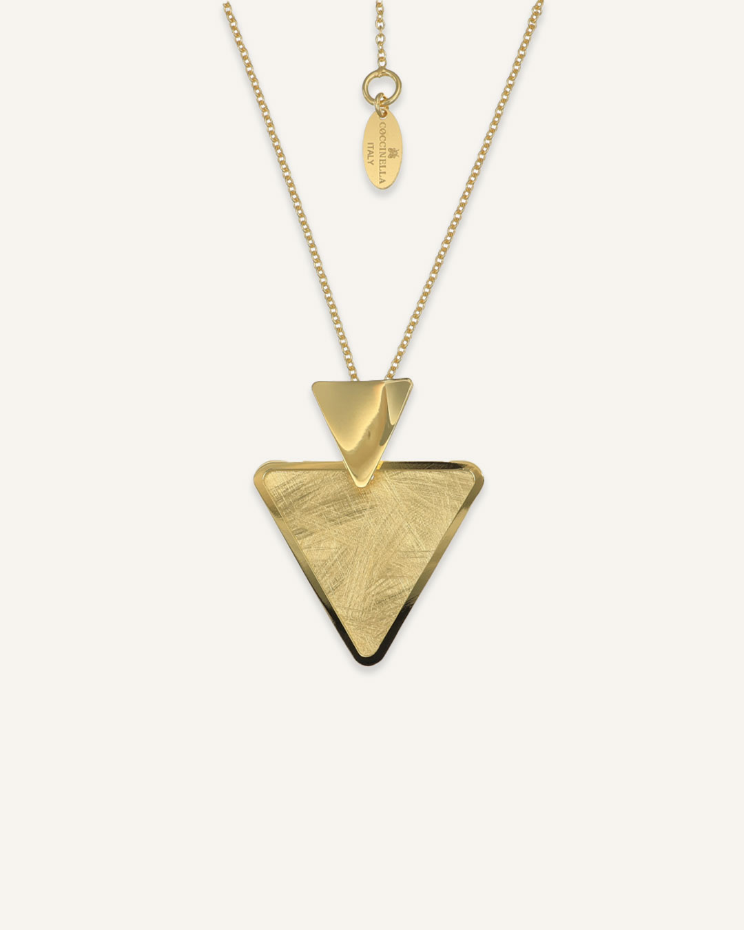 Elegantna ogrlica sa dva trokuta spaja moderni dizajn i talijansku profinjenost. Njen minimalistički stil savršeno nadopunjuje različite modne kombinacije, dodajući dašak sofisticiranosti.