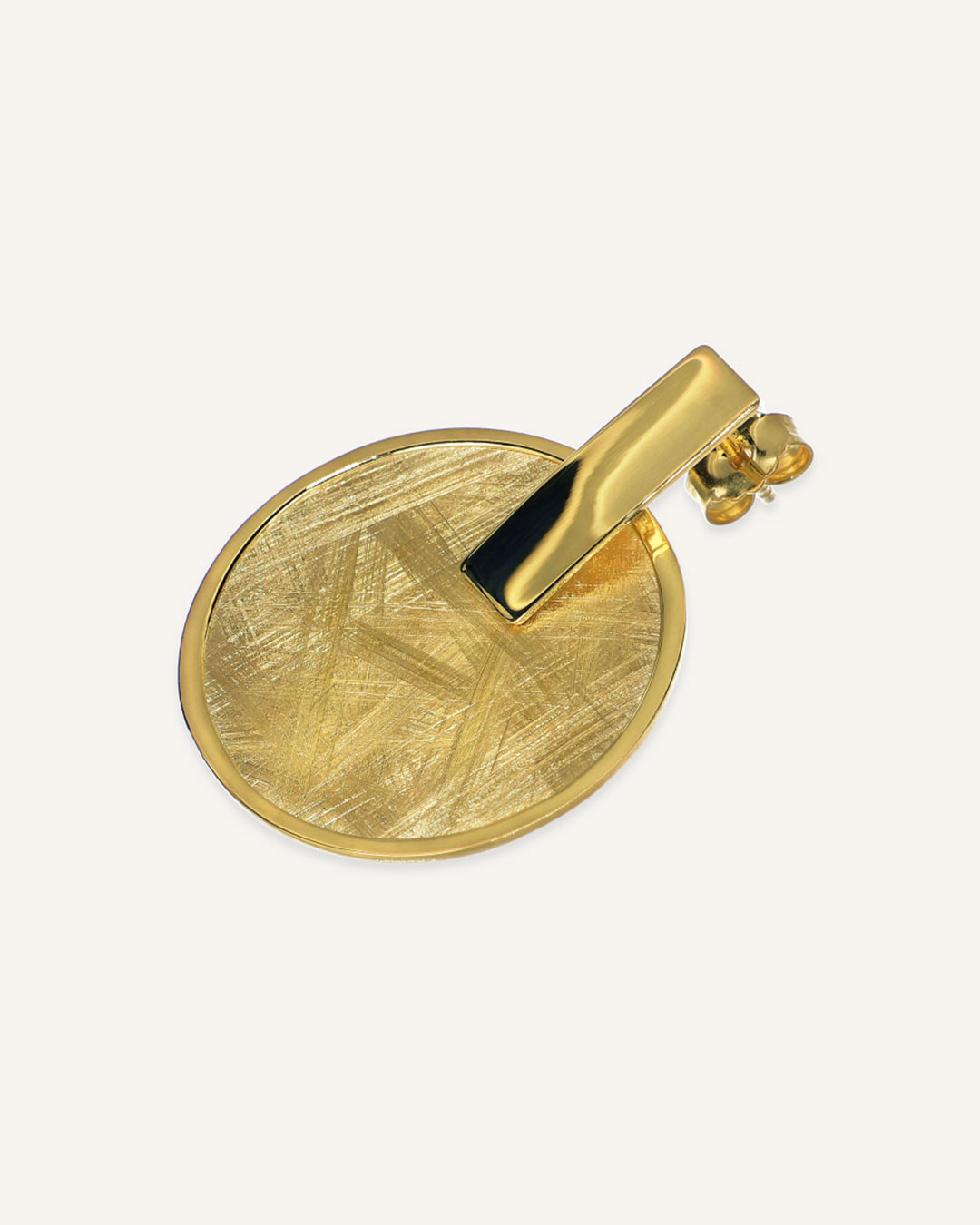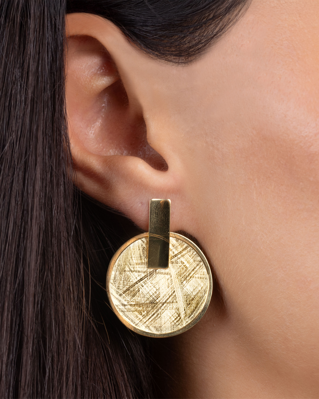 Autentične mat brušene okrugle naušnice sa sjajnim detaljem iz Toskane s diskretnim sjajnim detaljem predstavljaju savršen balans suptilne elegancije i upečatljivog stila. Njihov jedinstveni dizajn odražava toskansku tradiciju, dok sjajni akcenti dodaju dozu luksuza.