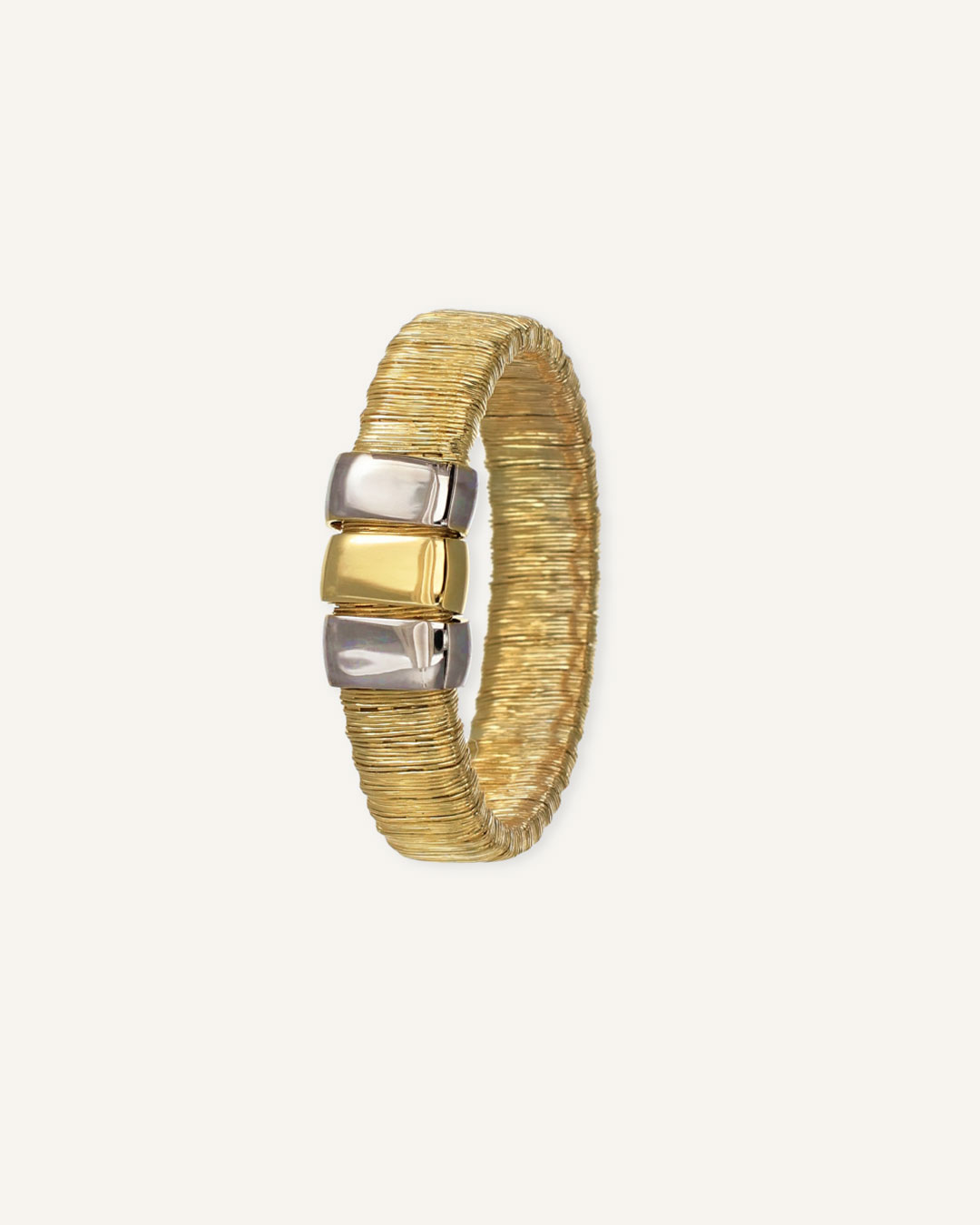 Talijanski prsten s tri sjajna elementa ističe se svojom impresivnom elegancijom i pažljivo izrađenim detaljima koji simboliziraju luksuz i stil.