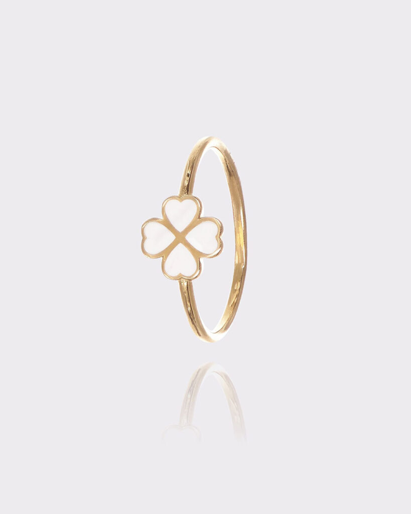 Zlatni prsten u obliku djeteline sa srčanim motivima simbolizira sreću i ljubav. Njegov jedinstveni dizajn spaja nježne oblike i eleganciju, čineći ga savršenim dodatkom za svaku priliku ili poseban poklon voljenoj osobi.